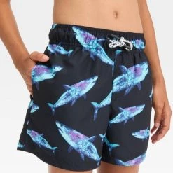Add a fun and fearsome sea life print to their swimwear with this Shark Printed Swim Shorts from art classâ˘. These lightweight swim trunks are designed with a built-in boxer brief for comfort and extra coverage both in and out of the water. Featuring a blue and purple shark pattern on a black backdrop, these mid-rise swim trunks are fun to pair with a variety of rash guards, tees or tanks for versatile swimwear options. The full elastic waistband with an adjustable drawstring lends them a secure and customizable fit. Plus, the UPF 50+ finish helps protect against UV rays.