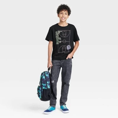 This Basketball Court Short-Sleeve Graphic T-Shirt from art class™ will give your child’s outfit a sporty aesthetic boost. Made from a cotton-blend fabric, this crewneck T-shirt is tailored in a regular fit that hits below the waist to keep them comfortable during any activity. The light pink line drawing of a basketball court across the front, accompanied by a list of various cities from around the world, adds a dynamic look to the simple design, while the black color of this pullover tee pairs easily with any style of bottoms.