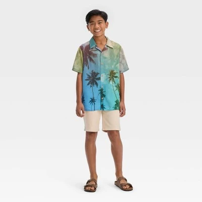 Add a touch of the tropics to their casualwear with this Palm Tree Short-Sleeve Button-Down Shirt from art class™. This lightweight shirt is made of a soft, flowy fabric to let your child breeze through the day in comfort and is adorned with an allover palm tree print for additional cool appeal. The short sleeves and collared neck with a button-down front add dapper details, while the relaxed fit and below-hip length make it comfortable to wear.