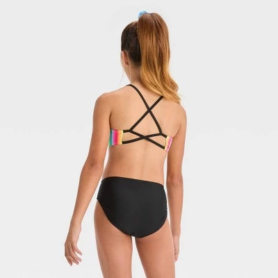 Your kid will be ready for a pool party with friends or the next family vacation with this On The Bright Side Bikini Set from art classâ˘. The swimwear set includes a striped bikini top and a solid hipster bottom, and a crisscross strappy design on the bikini top adds on-trend style to their summer look. Designed with soft fabric with spandex for stretchy comfort in and out of the water, this bikini set comes with removable cups for a customizable coverage.