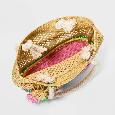 Stylish and summer-friendly, the Girls’ Paper Striped Straw Tote Bag – art class⢠Beige is a chic accessory that effortlessly elevates your kidâs summer wardrobe. Made from durable paper straw with a trendy striped pattern, this tote bag gives your outfit the perfect boho look. The softside design, coupled with an open main compartment ensures practicality for your summer adventures. With double cotton handles offering both comfort and style, this striped tote bag from art class is the perfect companion for a stylish and carefree summer.