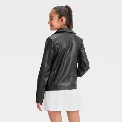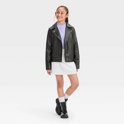 This Solid Moto Jacket from art class™ brings cool style to your child’s cozy weather outings. Made from a midweight fabric with soft taffeta lining and faux-leather look, this long-sleeve jacket keeps them cozy and comfy all day. Featuring a notch collar, two front zip pockets and a solid hue for classic style, it features a front full-length zipper closure that makes it easy to layer over a variety of outfits.