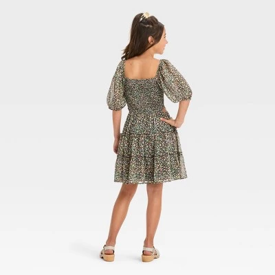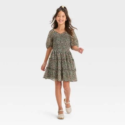 Give a dressier twist to your child’s wardrobe with this Smocked Bodice Cut-Out Chiffon Dress from art class™. This printed knee-length dress features balloon elbow sleeves, a tiered skirt and a smocked bodice for a touch of textured style. The lightweight chiffon fabric helps keep them comfortable all day, while the pullover style makes dressing quick and easy. They can add sandals, ballet flats or other fave shoes to complete the look.