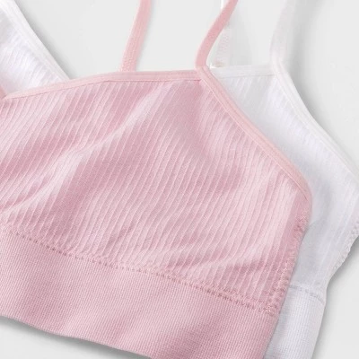 Made from soft fabric in a pullover style, this Girls’ Solid 2 Pack Ribbed Longline Bra from art class can be worn under a school uniform or play clothes. The solid pink and white bras feature a ribbed pattern for a classy look. The adjustable straps and underband offer a shapely lift and soft feel. These bras from art class are just what she needs to go about her day comfortably.