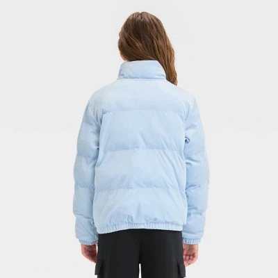 Add a soft pop of color to their cool weather look with this This Solid Cropped Puffer Jacket art class™. Made from soft velvet material in a cropped length, this long-sleeve jacket features a high stand-up collar and a midweight quilted design to keep them warm and comfy at all times. The full-length zipper allows for easy layering, while the two front pockets offer space for stashing small items.
