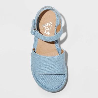Help your kiddo take on their day in comfort and style in these Amanda Denim Platform Sandals from art class™. These medium-width platform sandals feature an open-toe design for a breezy feel, while a soft fabric footbed offers comfort. A wide vamp lends secure wear while an ankle strap with a hook-and-loop closure offers them a customizable fit. Featuring denim construction with a contrasting footbed and textured outsole, they make a fun pairing with different outfits.