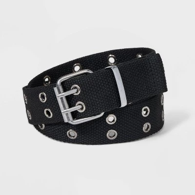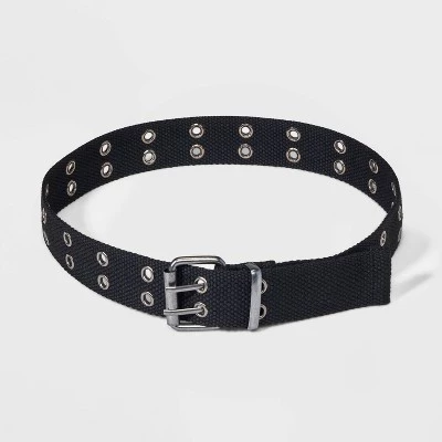 - Features metal grommets evenly spaced along the length of the belt for a fashionable look