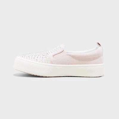 Upgrade your kiddo’s footwear collection with these Hanna Slip on Sneakers from art class™. The medium-width sneakers feature a padded collar construction with soft lining to keep them moving through their day in absolute comfort. Plus, the side goring with back pull tab allows for easy on and off. Showcasing shiny rhinestone detailing for a cool look, they make a wonderful pairing for anything from jeans and shorts to dresses and more.