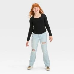 Girls’ Long Sleeve Rib-Knit Mock Neck Top – art class⢠Bright Blue