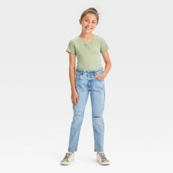 Girls’ Long Sleeve Rib-Knit Mock Neck Top – art class⢠Bright Blue