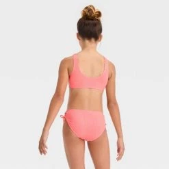 Girls' 'Classic Ribbed' Solid Bikini Set – art class™ Coral Orange